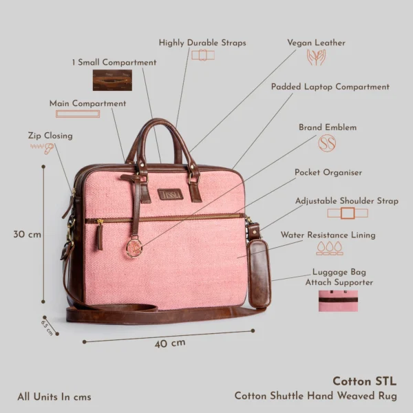 Roseate Canvas – Cotton Handwoven Briefcase Laptop Bag