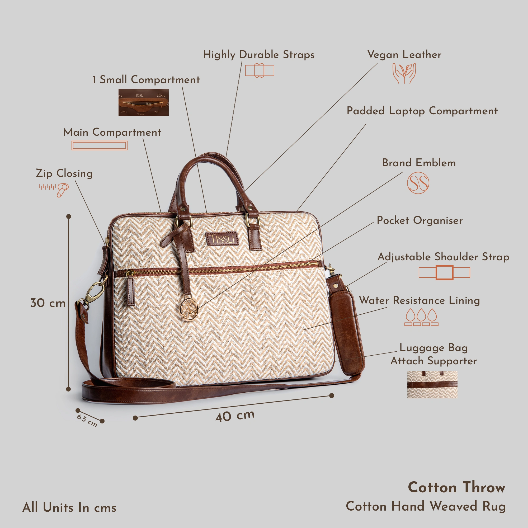 Ideal For: Office, travel, everyday use. Fits a 16.3” laptop, diary, charger, tiffin, wallet, keys, and more.