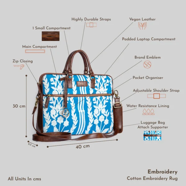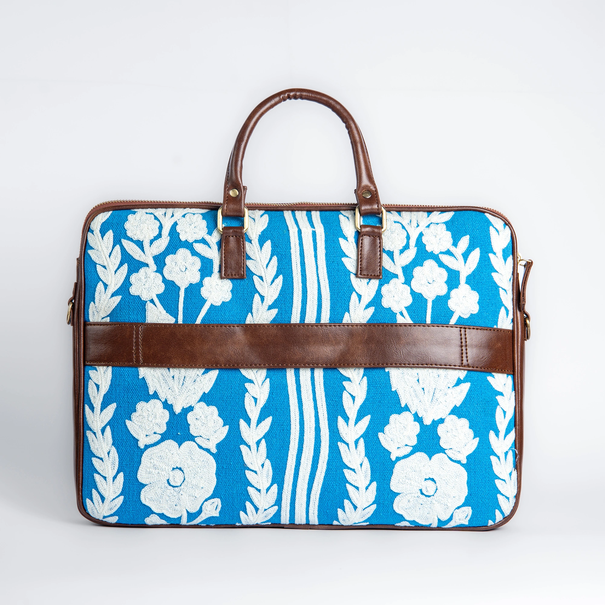 Winter Bloom – Floral Embroidery Leather Base Laptop Bag