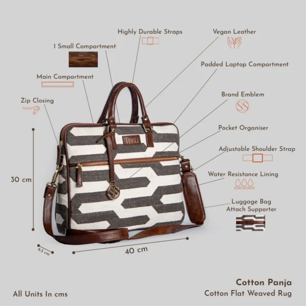 Ideal For: Office, travel, everyday use. Fits a 16.3” laptop, diary, charger, tiffin, wallet, keys, and more.