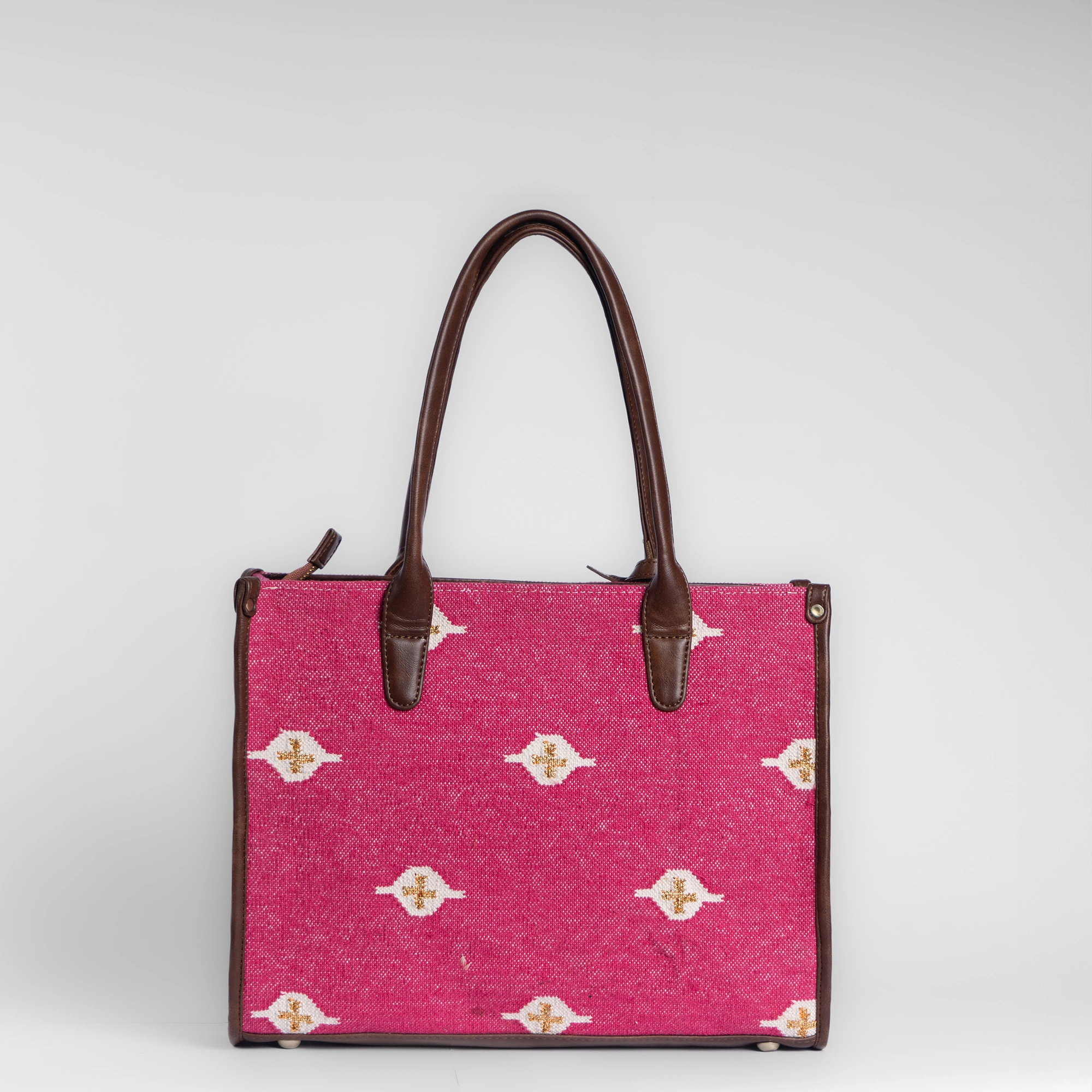 Inspired by the Intricate Craft of Gwalior Fort. Where geometry meets grandeur, bold patterns and colours reflect centuries of craftsmanship, translated into handcrafted pieces of heritage, structure, and timeless elegance. Vibrant handcrafted handwoven tote bag featuring bold fuchsia tones, a spacious interior, and durable everyday construction.