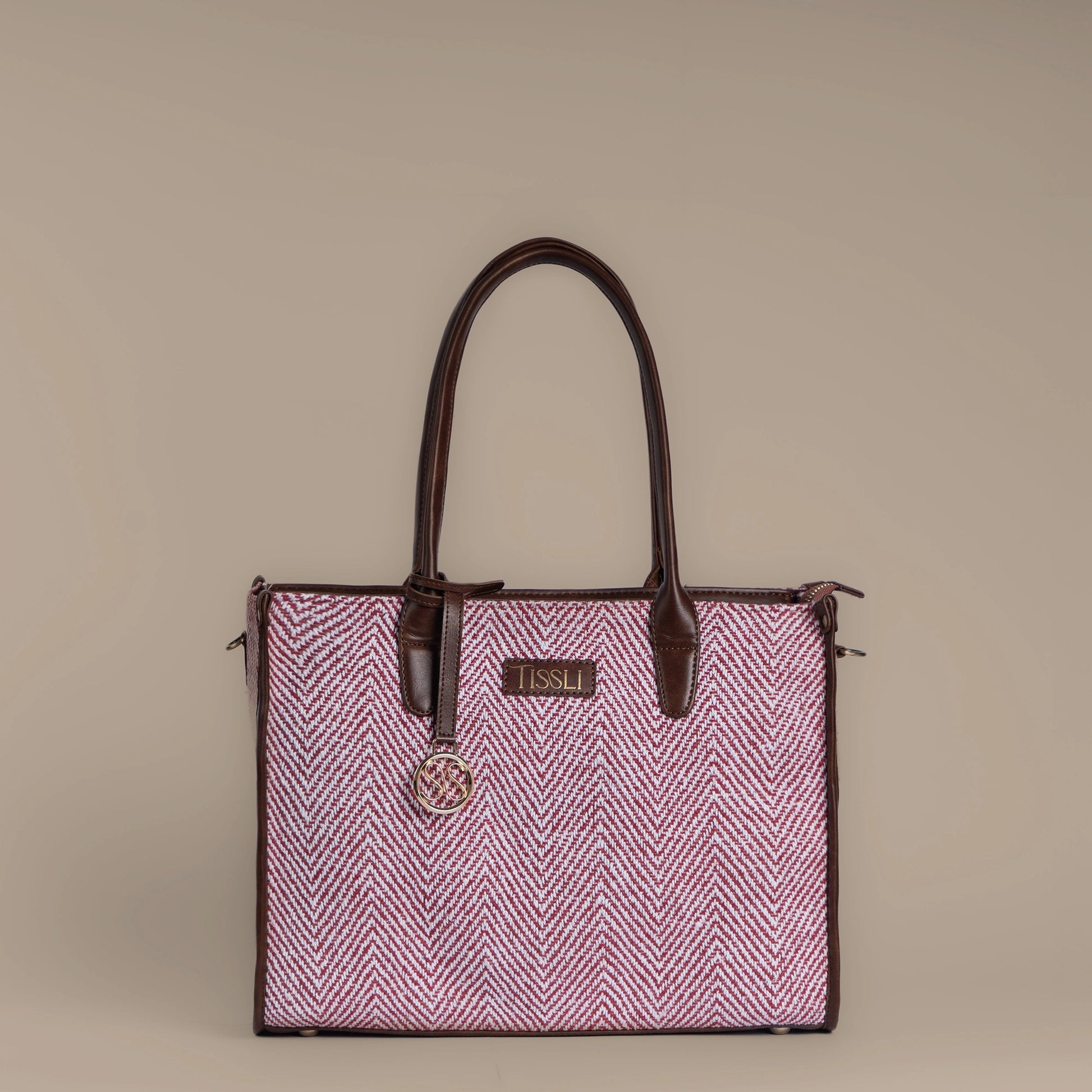 A tribute to the rhythmic beauty of Moroccan architecture, this design takes inspiration from the zigzag mosaics of traditional zellij tilework found in Marrakech's serene riads. The soft rose pink tones echo sun-washed medina walls, while deep brown accents reflect architectural grounding. Elegant, functional, and rooted in heritage, this office bag is a true reflection of Tissli’s ethos — where timeless craftsmanship meets modern elegance.